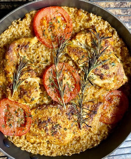 - Add the chicken back in along with 3-4 slices of fresh tomato, replace lid and continue to simmer for 2-3 minutes