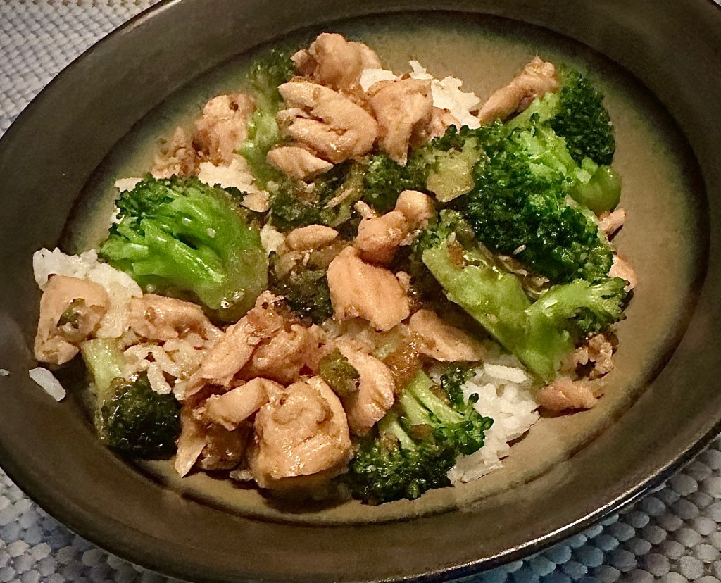 - Place Sesame Oil, Onions, Soy Sauce, and Chicken in a 3 quart Sauté pan over medium high heat and cook until Chicken is fully cooked – approximately 10 – 12 minutes.
