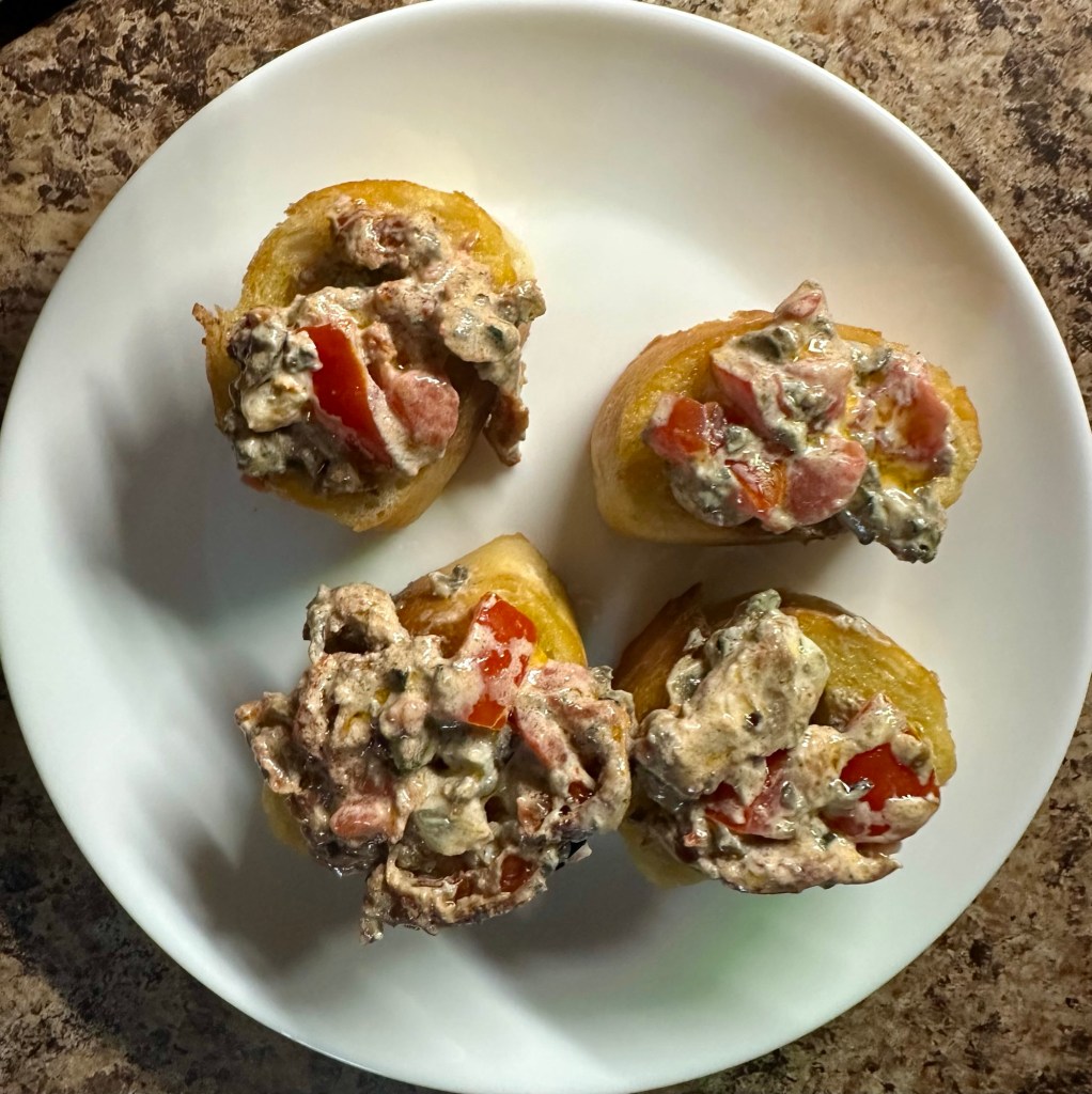 - Cover each Baguette slice (while still warm) with a small spoonful of the Tzatziki mixture.