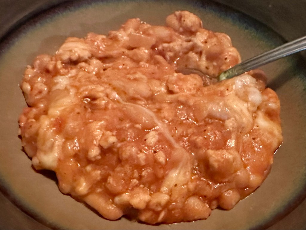 - Add the onions, beans, tomato paste, Kinder’s, and Italian seasoning to the pan with the turkey.